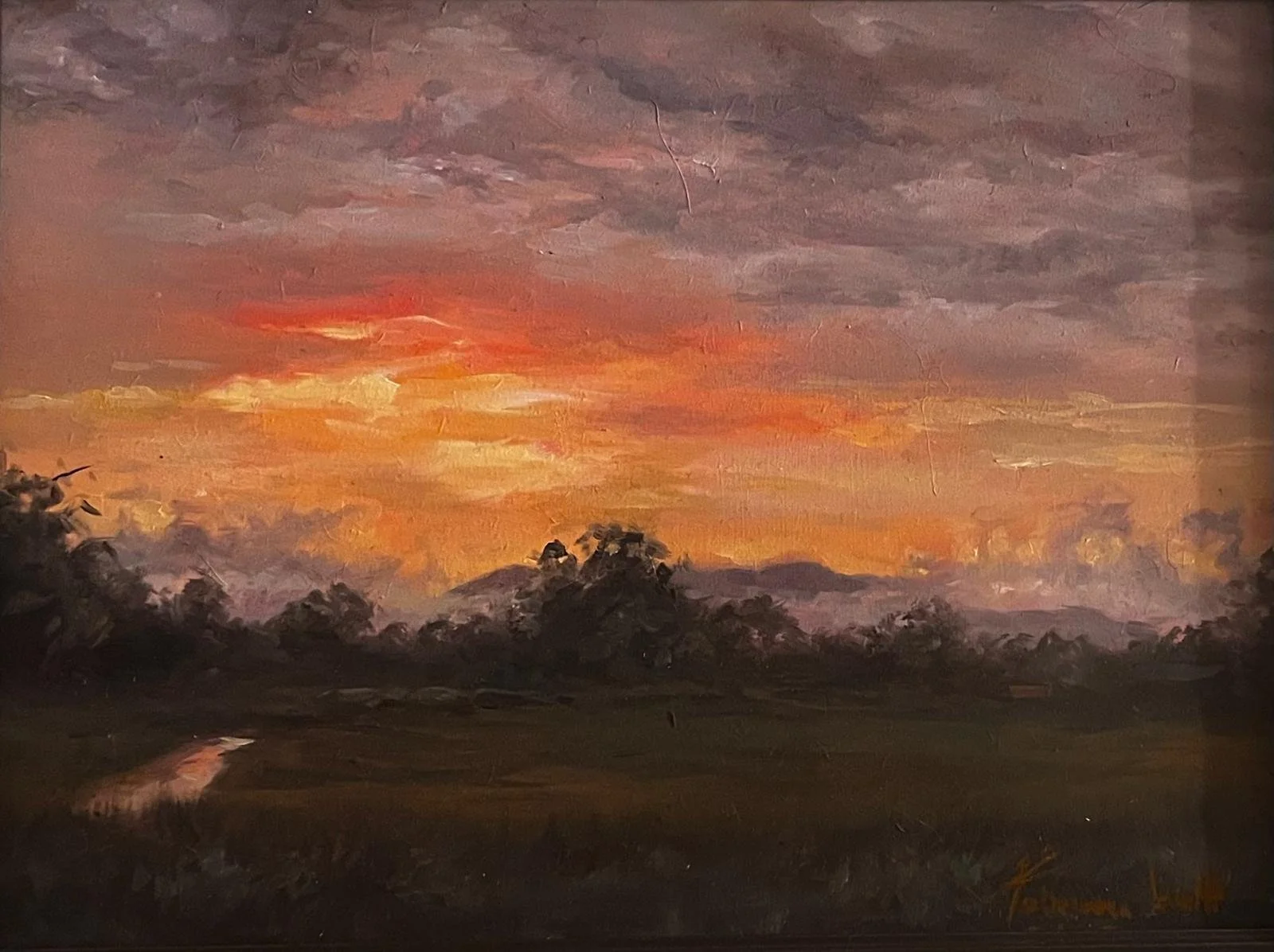 Acryl- und Ölmalerei auf grundierter Holzplatte. Der Rahmen ist im Preis mit inbegriffen. Dieses Bild ist nur mit Rahmen erhältlich, da es fest in den Rahmen eingepasst ist und dieser somit nicht getauscht werden kann. Maße Bild: 26x18cm , Maße mit Rahmen: ca. 30x40cm